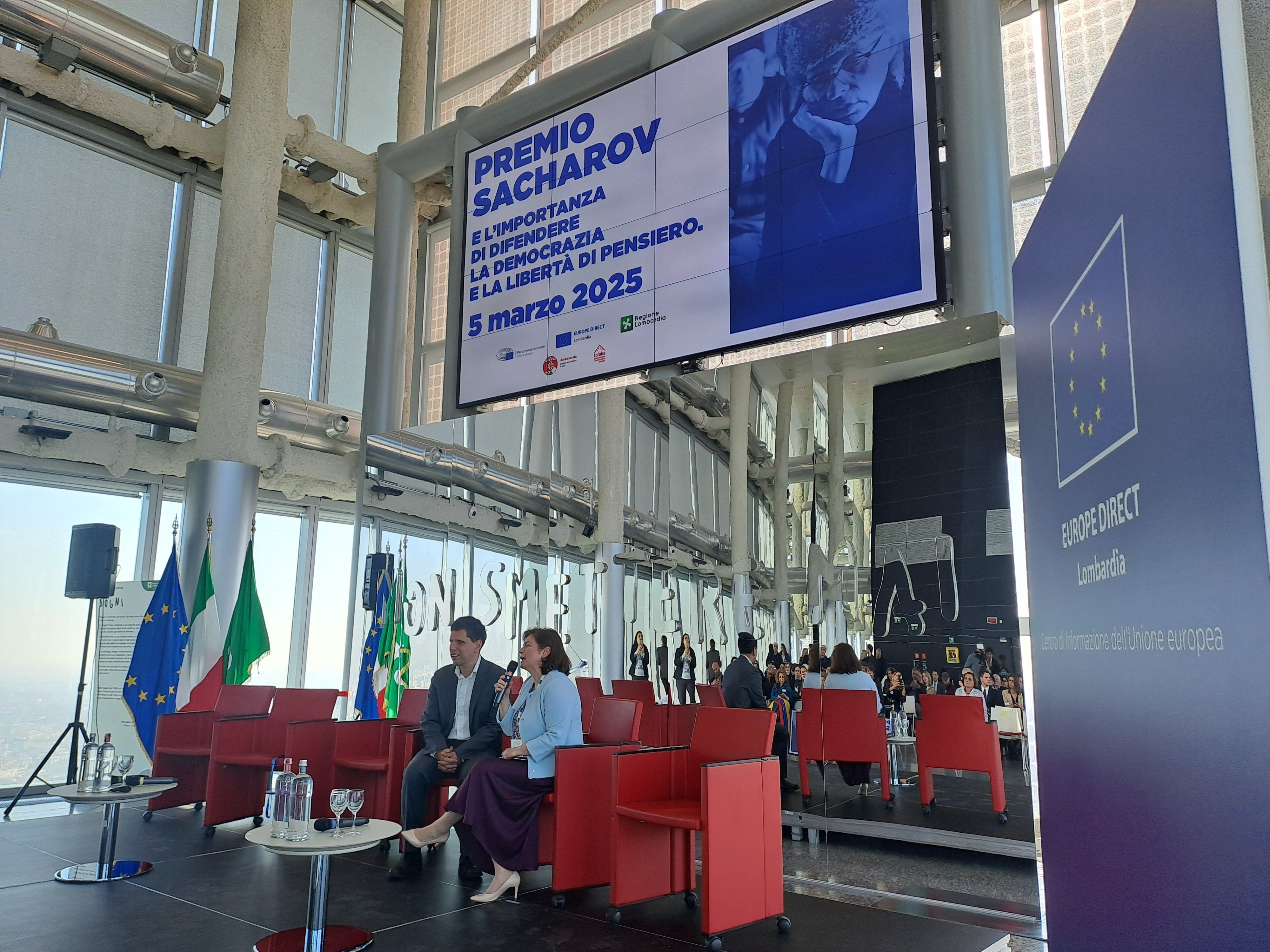 Una mattina che si è rivelata straordinariamente intensa di interventi stimolanti, capaci di suscitare riflessioni profonde, che è entrata subito nel vivo, a partire dalle ore 10:00, presso il Belvedere Berlusconi, al 39° piano di Palazzo Lombardia, dove, Europe Direct Lombardia ha organizzato, in collaborazione con l’Ufficio del Parlamento europeo a Milano e Regione Lombardia, l'evento "Premio Sacharov e l'importanza di difendere la democrazia e la libertà di pensiero", riunendo esperti e una platea di circa ottanta partecipanti, intorno ai temi della democrazia e della libertà di pensiero, in occasione del Premio Sacharov.
